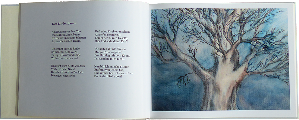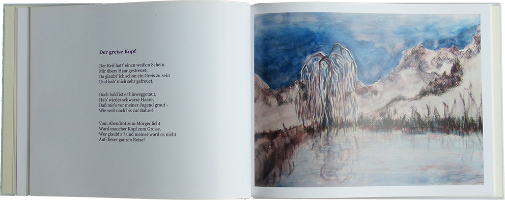 Der Bildband zeigt 24 Aquarelle mit Kohle, die mit den jeweiligen Liedtexten von Wilhelm Müller korrespondieren. Auf den rechten Seiten sind die Bilder und auf den linken Seiten die jeweils entsprechenden Liedtexte zu sehen. Die Aquarelle wurden speziell für einen Liederabend geschaffen, der von der „Internationalen Opernakademie“ organisiert wurde und am 14. Mai 2015 im Alleesaal in Bad Schwalbach (Taunus) stattfand. Während ein Lied von der Opernsängerin Eva Hartmann vorgetragen wurde, erschien das passende Bild dazu auf einer großen Leinwand. Die Projektionen der Aquarelle wurden von Reinhold Neef realisiert.